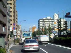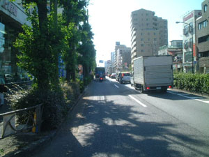国道254号線 「川越街道」 を埼玉方面から池袋方面へと上ってまいりますと、右手に陸上自衛隊 練馬駐屯地、トーホーボールさん&ドンキホーテさんが見えてまいります。これらを越えていただくと正面に現在工事中の環状八号線との交差点が見えてまいります。まだしばらく直進してください。 |