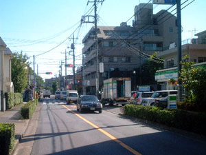 「五本けやき」の信号から2つ目の信号です。右手の角のファミリーマートさんが目印です。この信号を右折していただきます。歩行者や自転車に気を付けてくださいね。 <閑話休題> この信号の20mくらい先の右手に超辛いラーメン(タンメン)で有名な「中本」さんがございます。いつも長蛇の列で大繁盛しています。 |